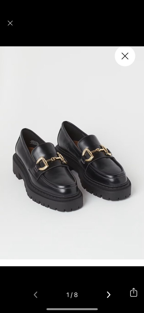 Normal fiyatından çok aşağı veriyorum orijinal üründür Siyah kadın loafer, platform topuklu ve parlak altın tokalı. Düz yüzeyli, gotik esintili klasik stil, ofis kullanımı için uygun. Dayanıklı kauçuk tabanlı.