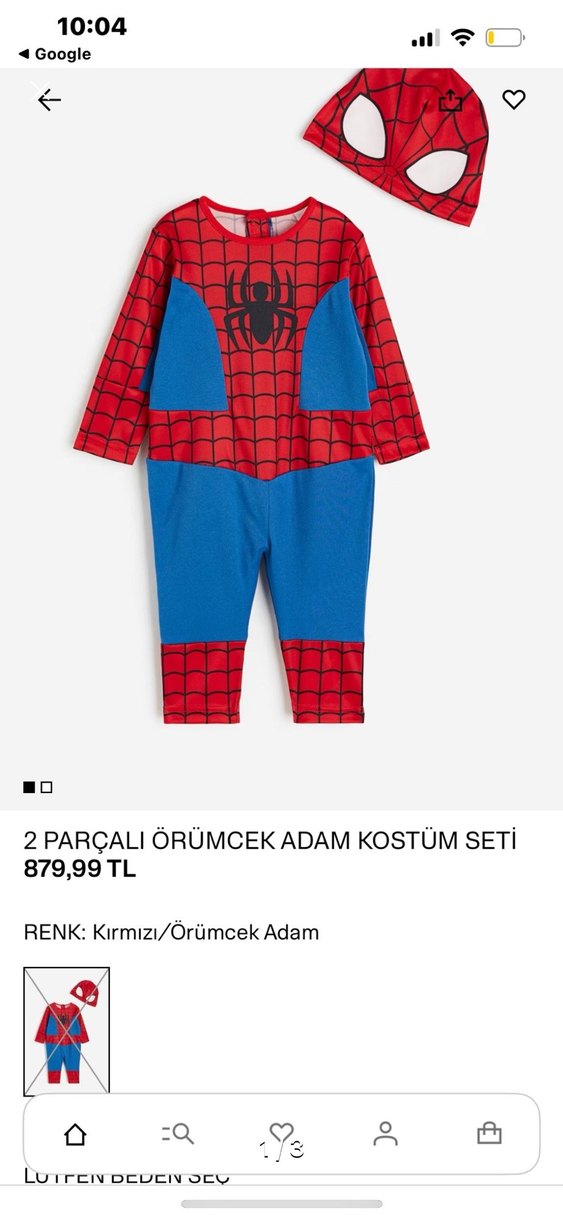 H&M Örümcek Adam Çocuk Kostüm Seti