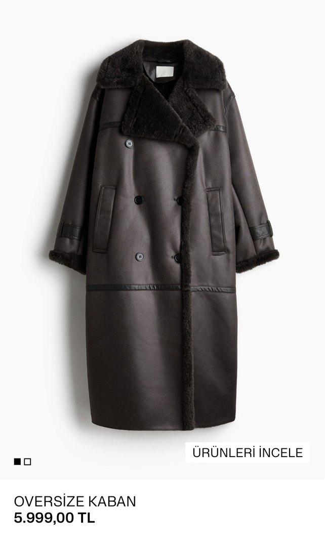 Kahverengi deri kaban, uzun boy, kürk detaylı ve kesik yaka ile tasarlanmıştır. Strappy kollu, regular fit ve desen yok. Paris tarzı normcore şıklık sunar.