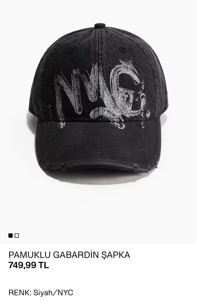 Siyah pamuklu gabardin kumaştan, gri yıpranmış baskılı rock punk tarzı şapka. Sokak modasına uygun, dayanıklı ve rahat. Etiketli Son fiyat