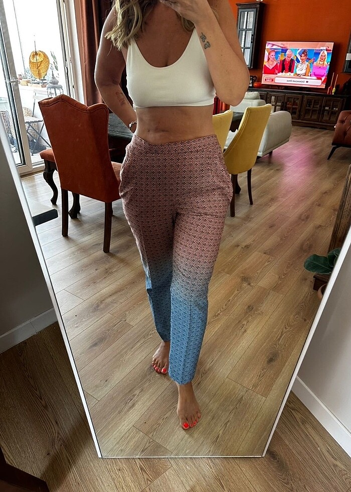 New York hm den almıştım. 1 kere giydim. Keşke olsaydı dolabımda yıllarca saklayabilirdim. Beli lastikli. L beden 40-42 bedene uyumlu bacaklarınız ince ise 44 beden de rahatlıkla giyebilir. Gece gündüz kullanımına uygun. Yaz için şahane bir pantolon