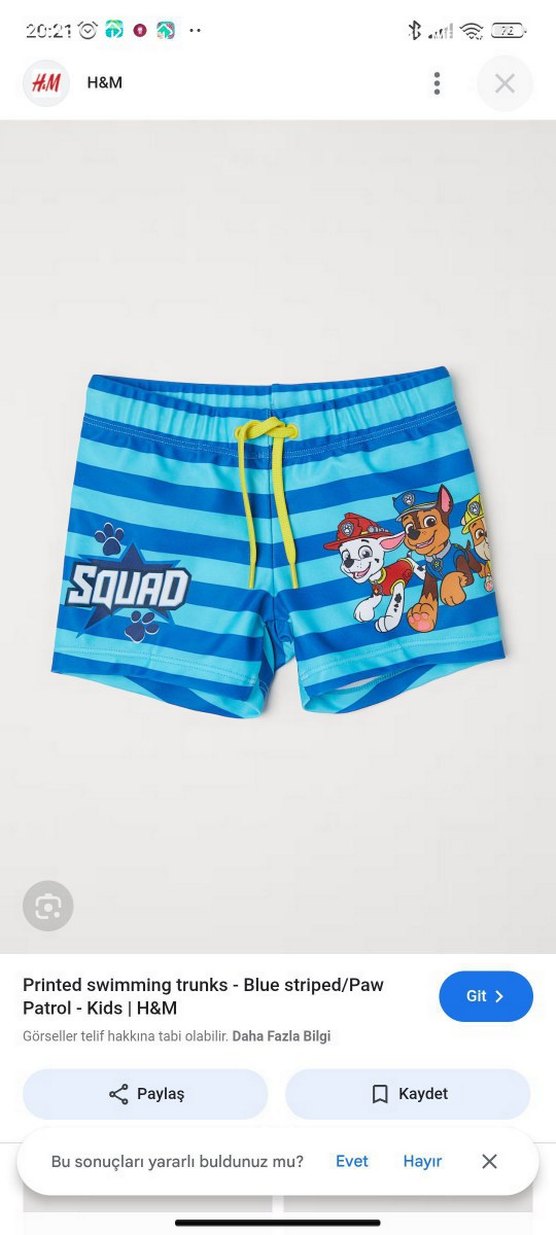 H&m Mavi Paw Patrol renkli baskılı erkek bebek mayo şortu, 9 12 ay . 1 kez kullandık .