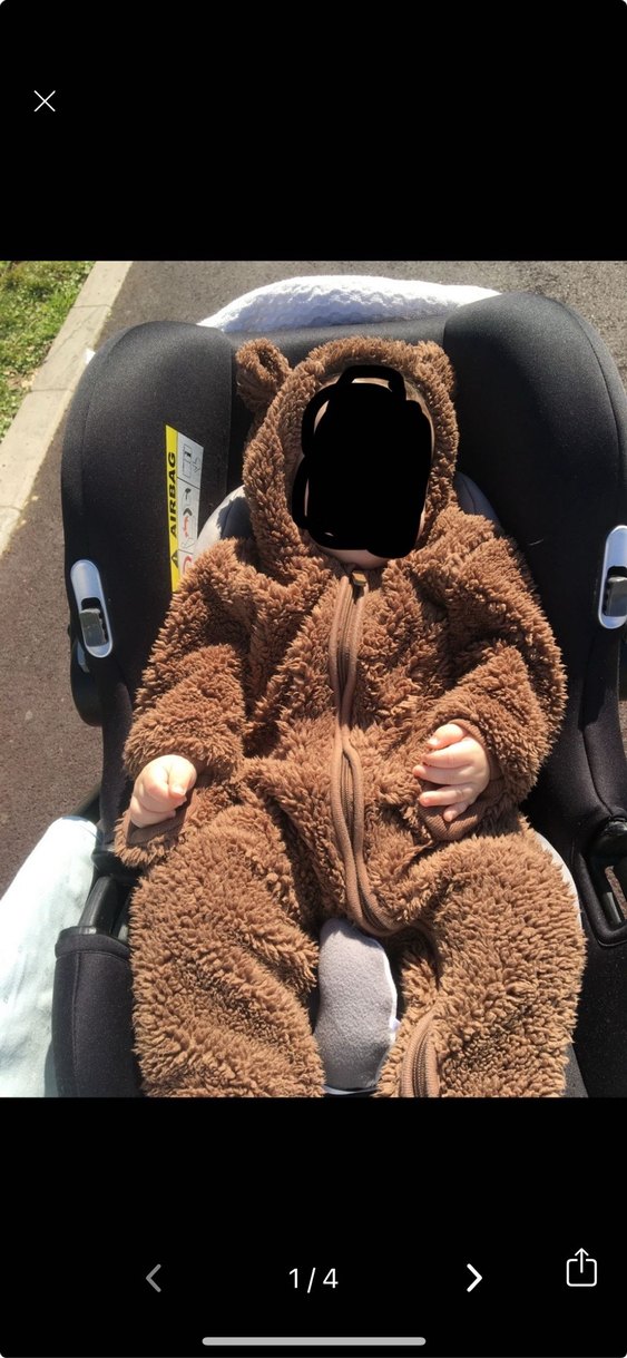 Etiketinde 4-6 ay yazıyor ama kalıbı geniştir. 6.aydan 9.aya kadar giydirildi. Yaz gelmeseydi daha da giydirilirdi muhtemelen :). Çok tatlı gören herkesin dönüp baktığı bir tulum. Hiçbir kusuru yok tertemiz. Bebek deterjanı ile yıkanmıştır.