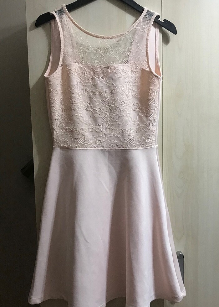Çok tatlı pudra rengi bir elbise sadece mezuniyetimde giydim üst kısmı vücudu tam sarıyor sorunu yok Mezuniyetimde giydim