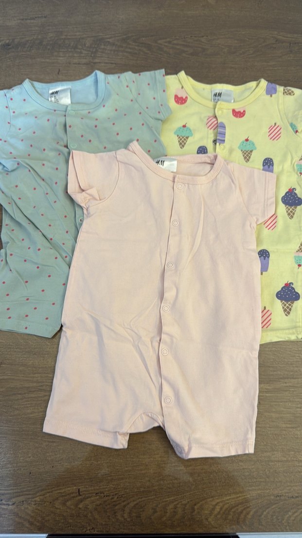 h&m Pembe Düğmeli Bebek Kısa Tulum seti