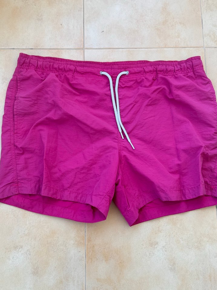 h&m sort mayo en 60 cm boy 38 cm Canlı pembe renkte, sentetik kumaştan üretilmiş, rahat kesimli erkek mini şort mayo. Düz tasarımı ve bağcıklı bel detayıyla plaj ve sokak modasına uygun.