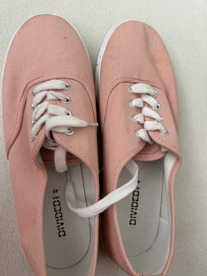 H&M Pastel pembe renkte, desensiz kadın sneakers. Kauçuk tabanlı, rahat ve zahmetsiz şıklık sunar.