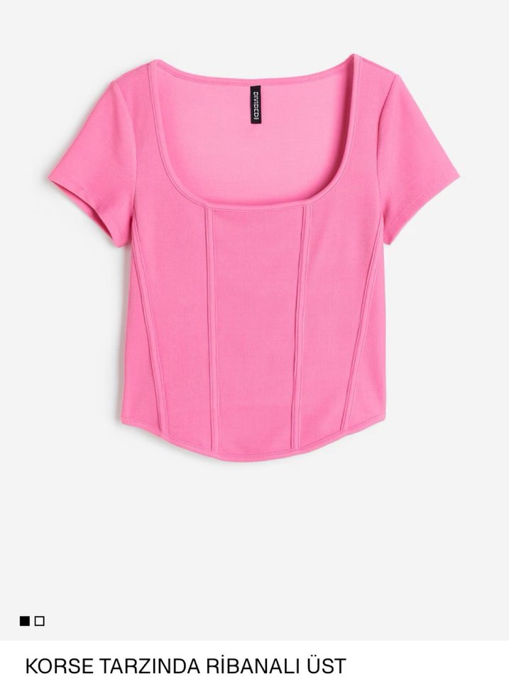 Korse tarzında ribanalı, kısa kollu, pembe kadın tişörtü. Yumuşak sentetik kumaştan, rahat ve şık bir görünüm sunar. Trendy günlük kombinler için ideal.