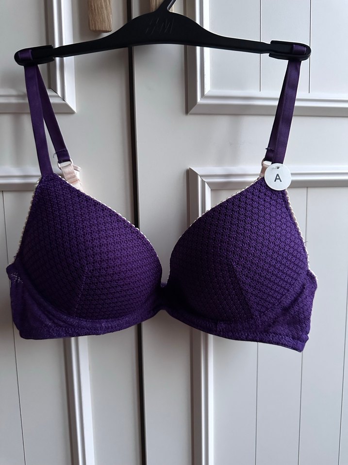 Sıfır ürün etiketli. Push Up destekli.Üzeri dantel detaylı mor bir sütyen açık renkli biyeleri mevcut . Askıları arkadan kopça ile birleşebiliyor 2 farklı kullanımı mevcut resimlerde gösterdim