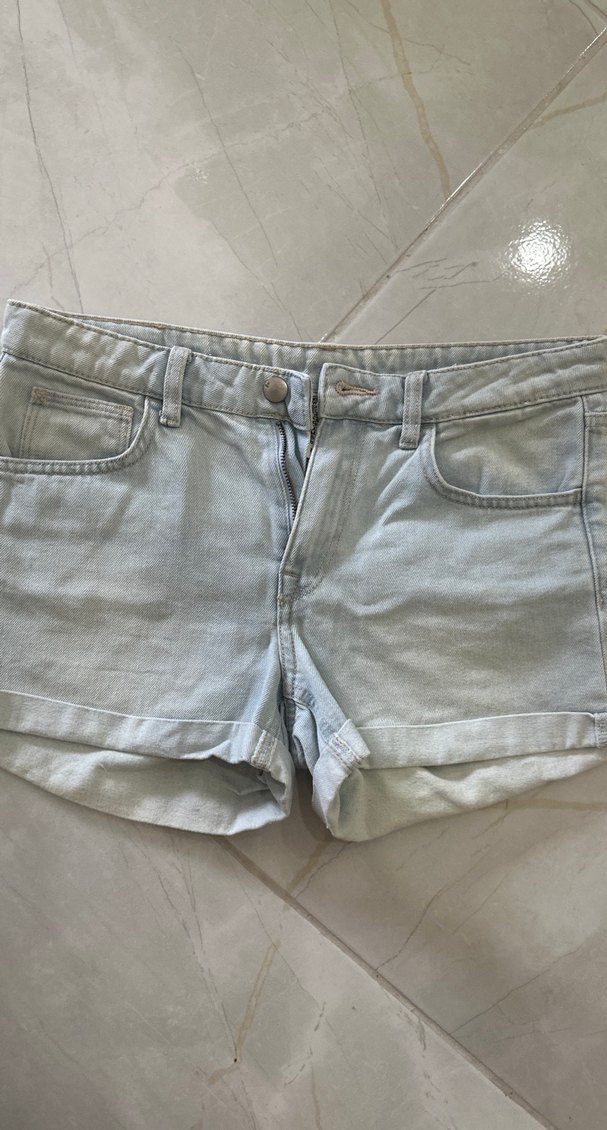 Çok az kullanıldı hiç bir sorunu yoktur açık mavi kot şort