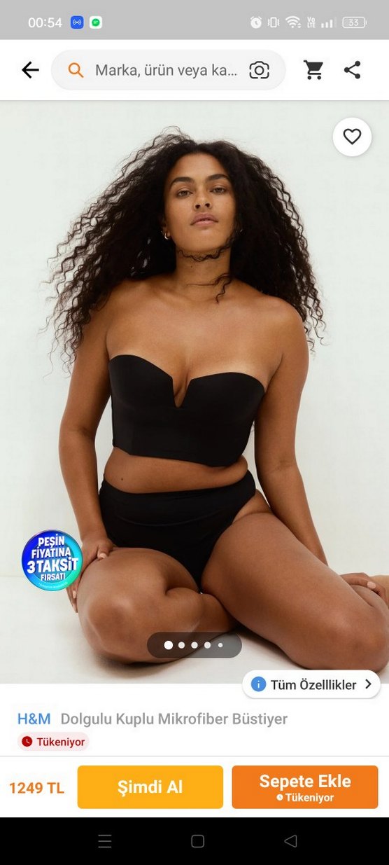 H&M sıfır ambalajında Siyah Straplez Mini Bustiyer