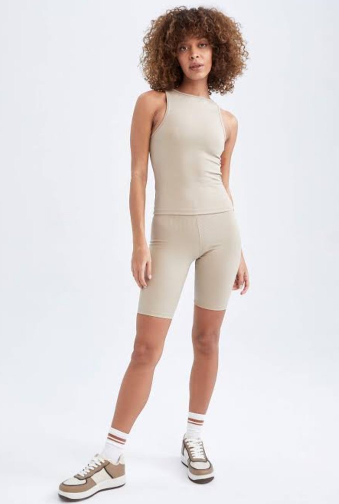 H&M Sıfır Bej Rengi Yüksek Bel Fitilli Tayt