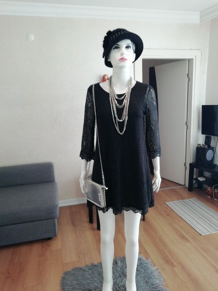 Yenidir, yarım etiketlidir. Siyah, tığ işi dantel, parlak astarlı pamuklu ve polyester kumaş,A kesim, kollar hafif çan şeklinde 3/4kol,klasik ve hafif goth tarzda günlük, gece kombinlerine uygun şık, kaliteli, gösterişli mükemmel kusursuz mini elbisedir. M beden.Göğüs 47cm,bel 52cm,kalça 52cm,etek genişlik 60cm,boyu 84cm,omuz 40cmdir. #HM #Divided #siyah #dantel #Akesim #çankol #minielbise