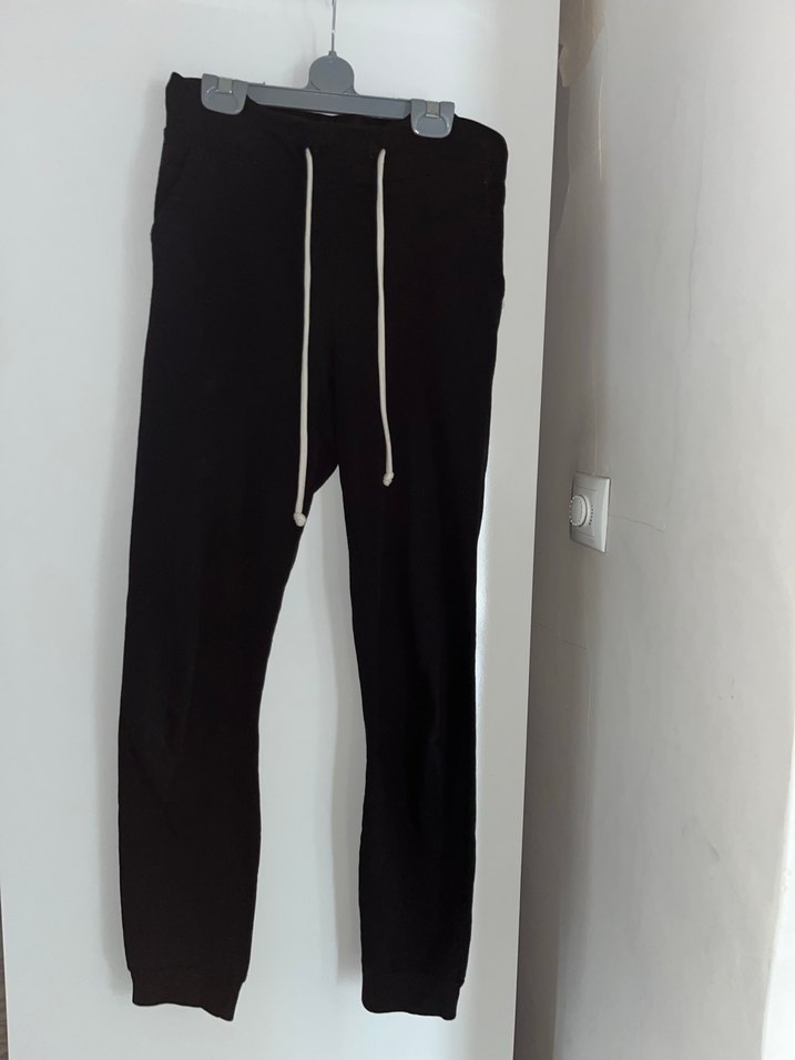 H&M Siyah Eşofman Altı. Bir sorunu yoktur elimden çıkmasını istediğim için bu fiyata veriyorum. Beli ipli ve lastikli esneyebiliyor. Boyu 95cm. Beli 40cm.