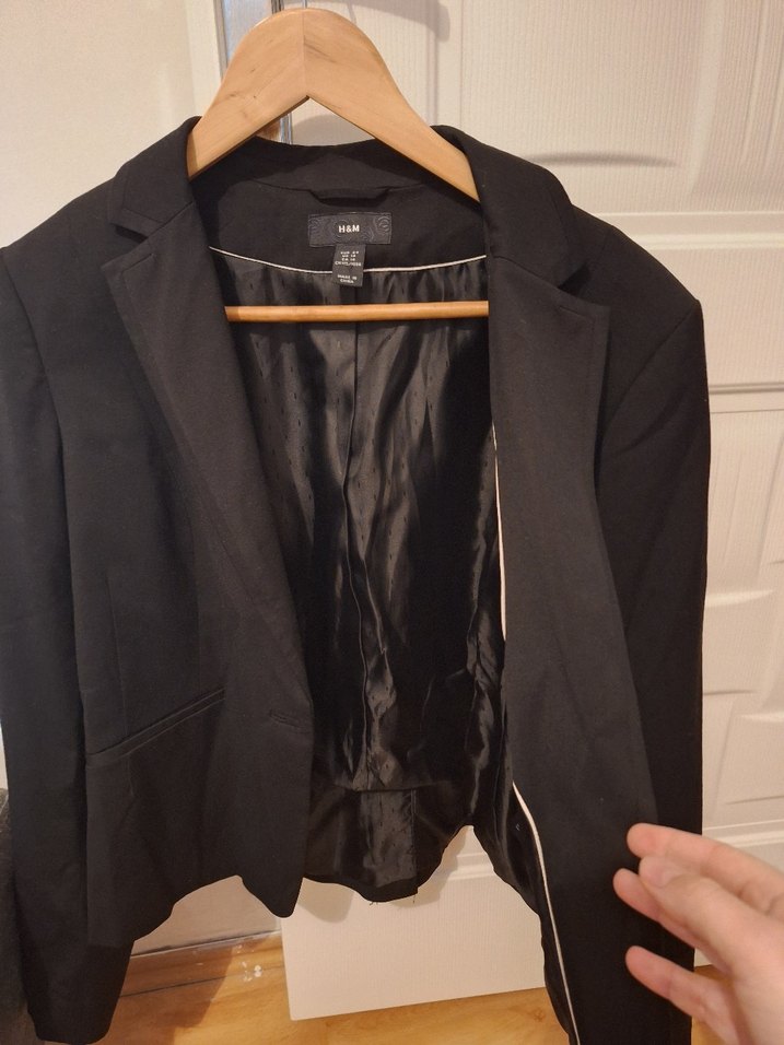 Siyah, satenimsi kumaştan, uzun kollu, kesimli kadın blazeri. Ofis ve sokak modasına uygun.