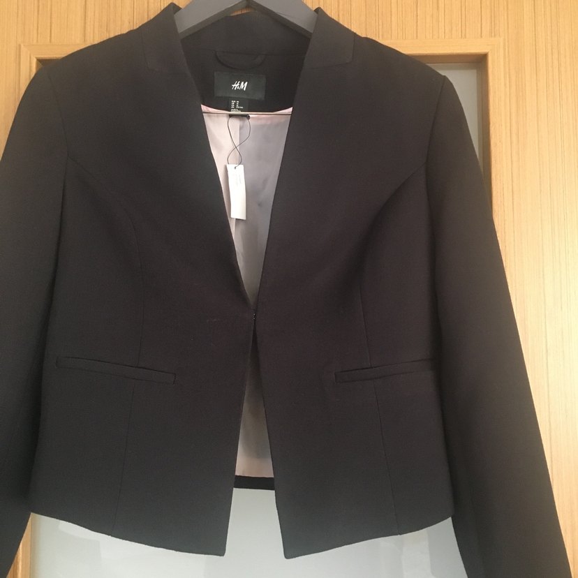H&M siyah kadın blazeri, yaka detaylı ve uzun kollu, normal kesim ve, ofis kullanımı için uygundur.