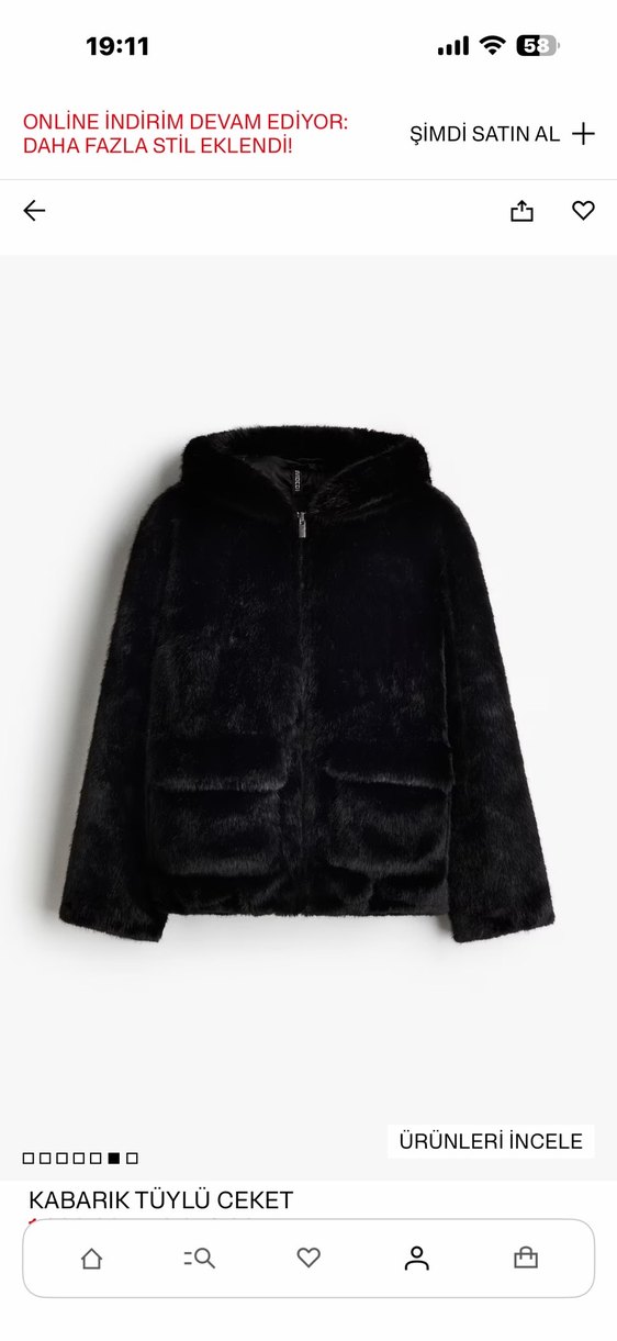 H&m Siyah Kapüşonlu Kadın Kürk Detaylı Ceket