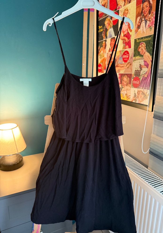 Tiril tiril siyah elbise. Askıları ayarlanamıyor. Pamuklu kumaş.
