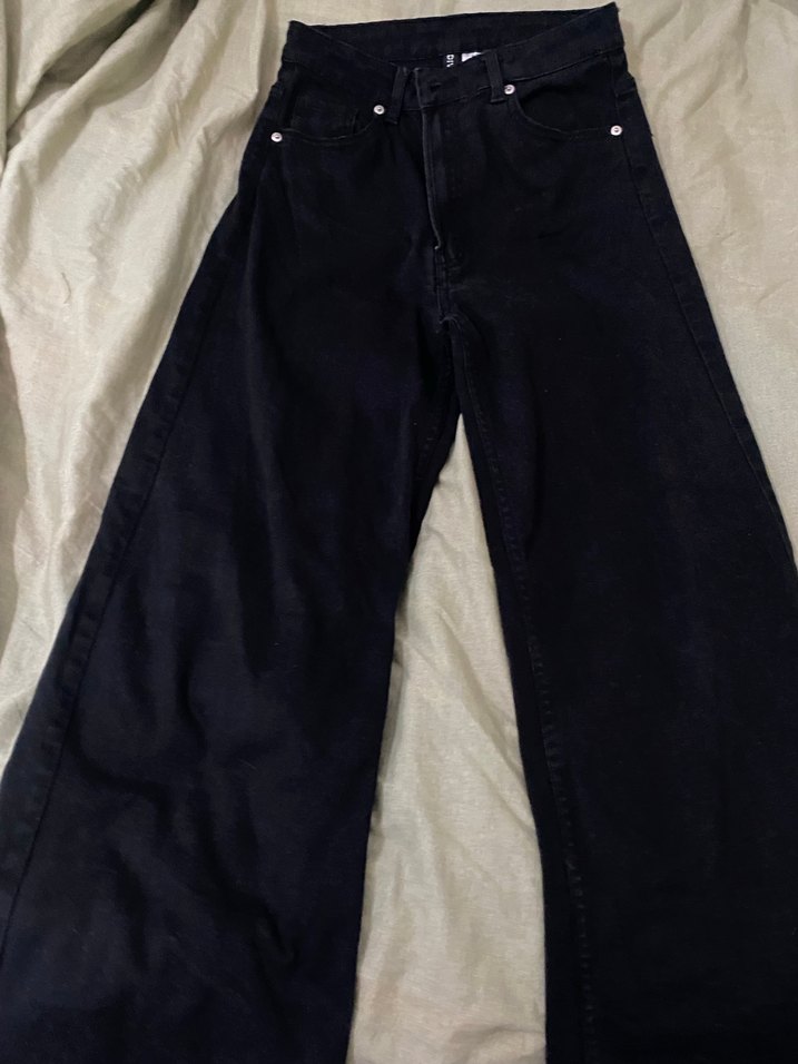 Fermuarlı, siyah kot pantolon, dar kesim ve midi boyda. Baskılı desenli, günlük sokak stili için uygun. 38 beden.