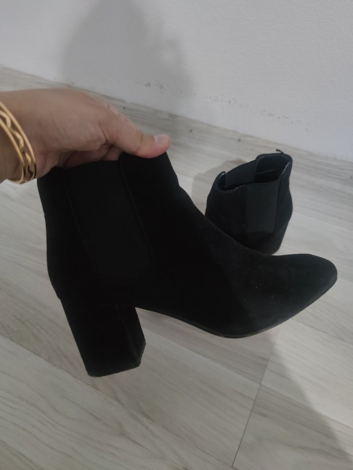Tokalı detaylara sahip siyah süet kadın botlar, blok topuklu ve günlük kullanım için uygundur. Gotik tarzda, şık ve rahat görünüme sahiptir. hiçbir kusuru yoktur
