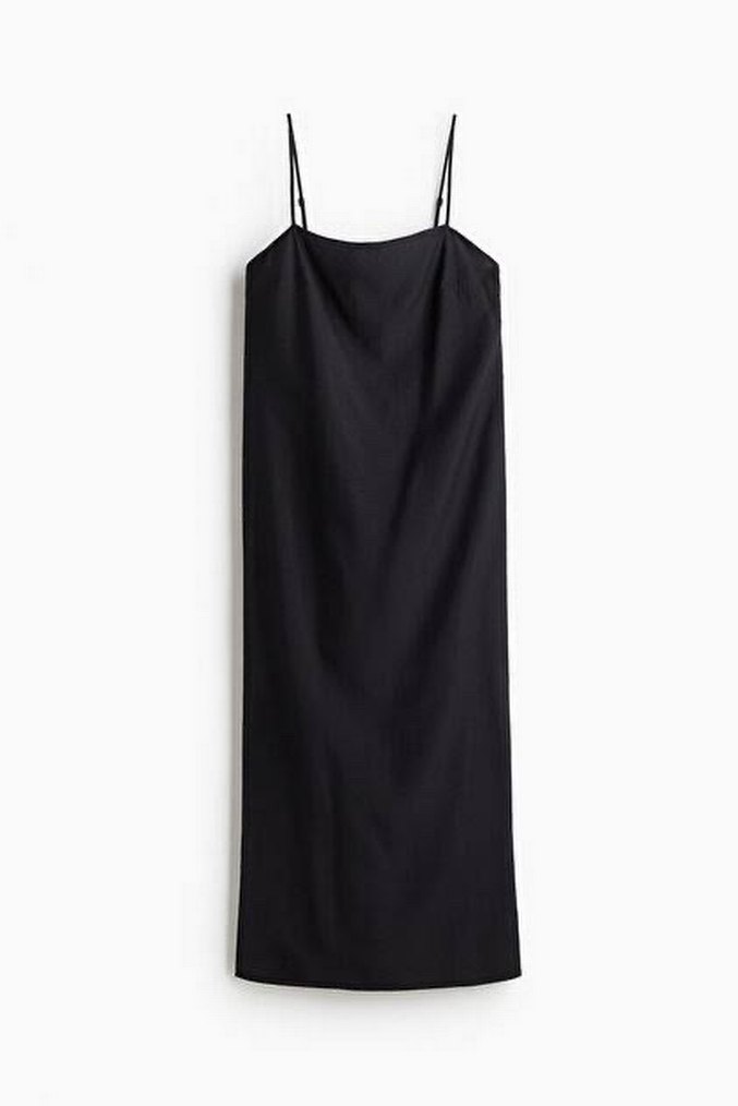 H&m Siyah Uzun İp Askılı Saten Elbise