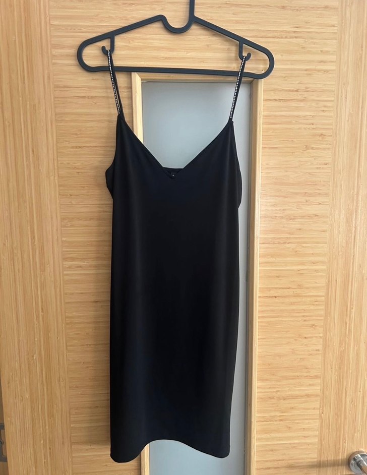 H&M Siyah V Yaka İnce Taşlı Askılı Mini Elbise
