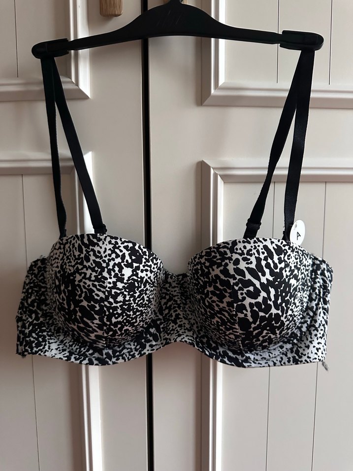 Sıfır Ürün etiketli. Askıları çıkan straplez bir ürün. Hafif destekli pedlere sahip.