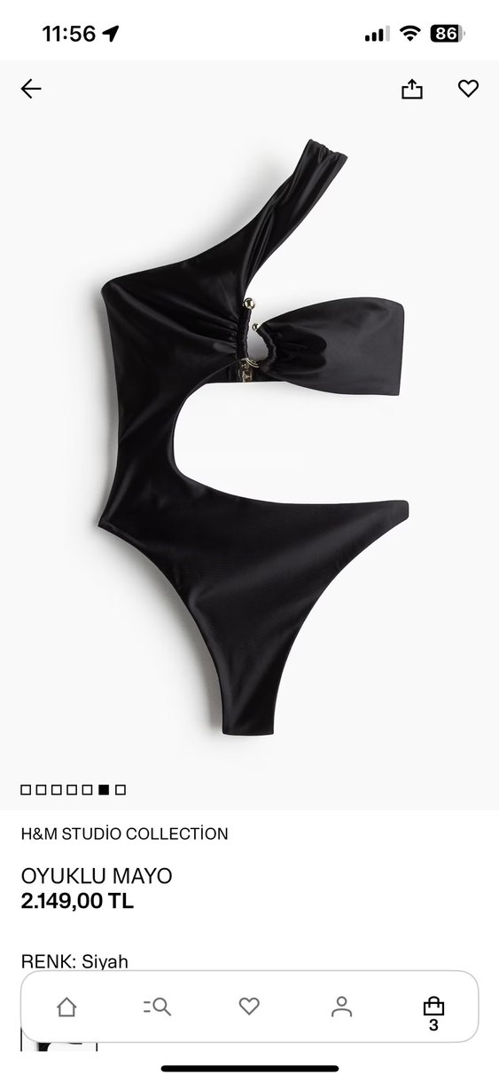 H&M Studio Collection'dan siyah, oyuklu ve tokalı detaylara sahip, iddialı askılı ve vücuda oturan mayo. Parti için uygun.