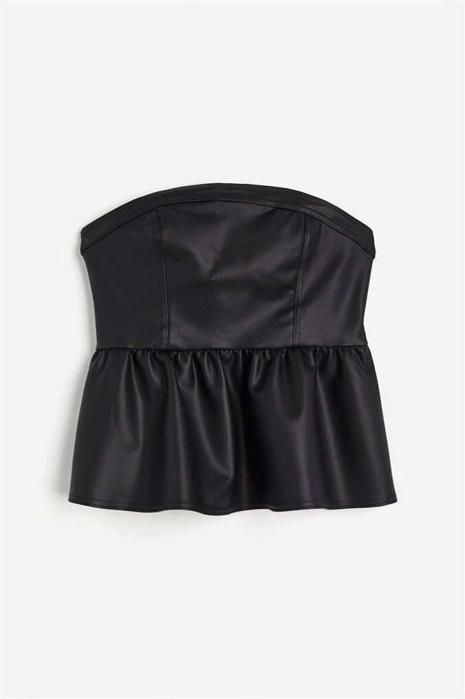 H&M Suni Deri Straplez Peplum Üst