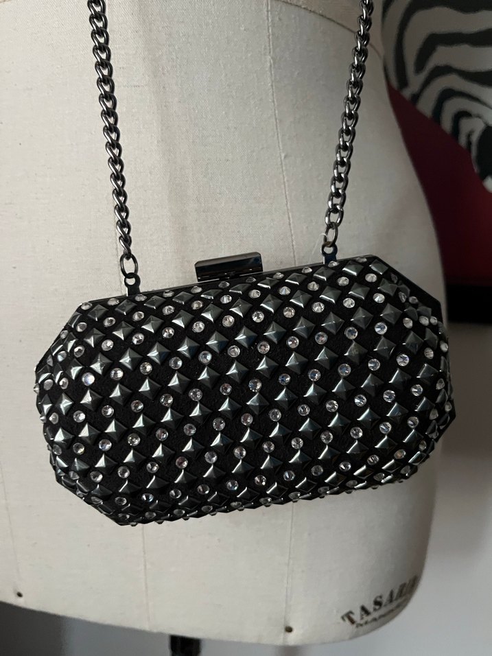 H&M taşlı zımbalı zincir askılı clutch