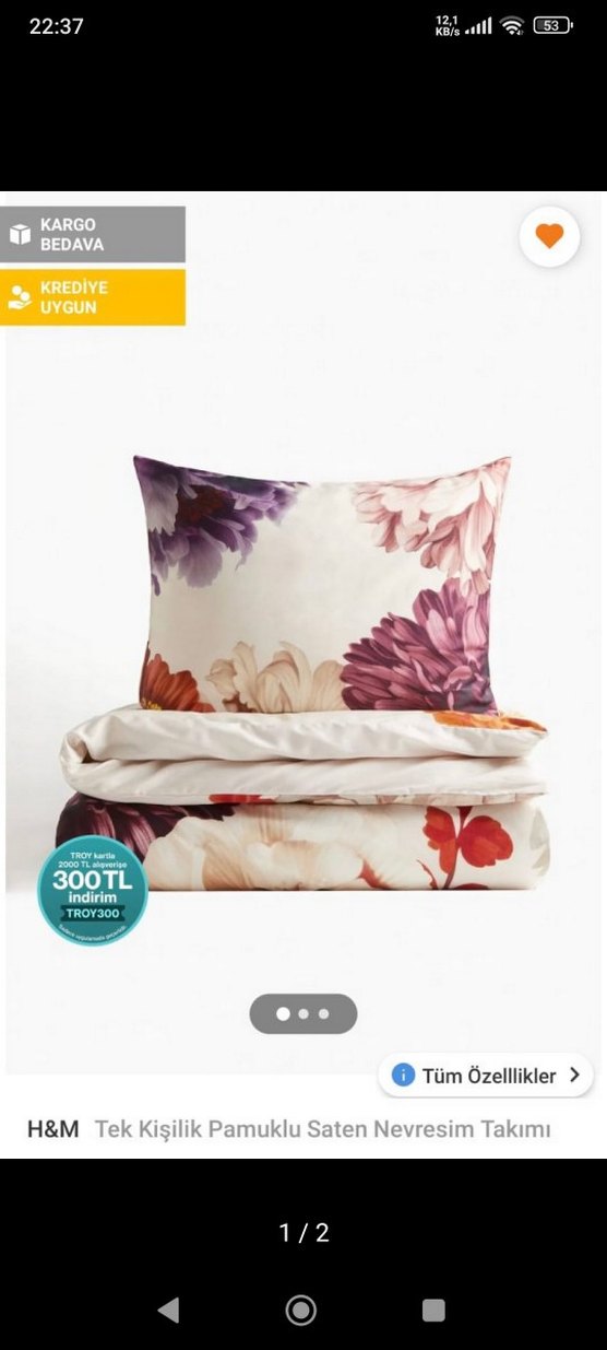 H&M Tek kişilik Pamuk Saten Nevresim Takımı