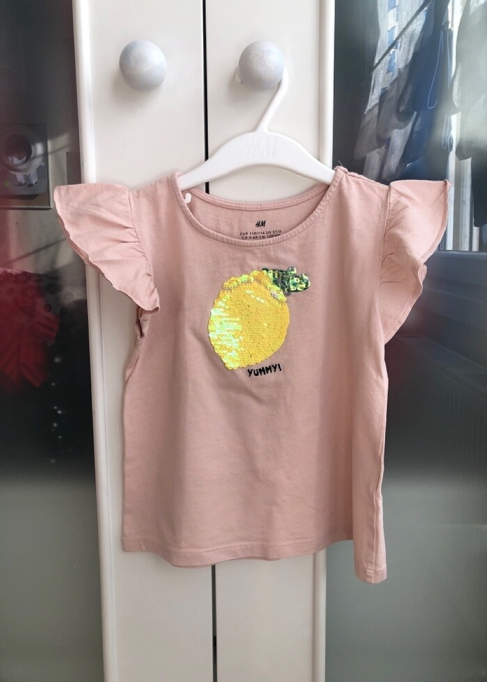 Limon desenli pudra renk H&M tişört çok temiz durumda
