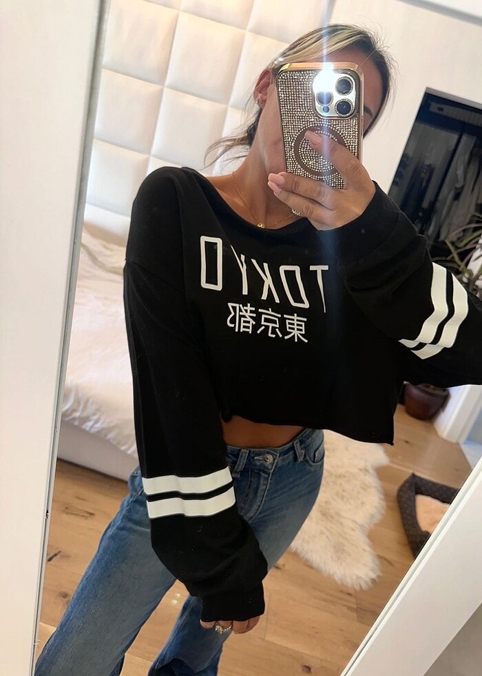 H&M TOKYO BASKILI CROP SWEATSHİRT