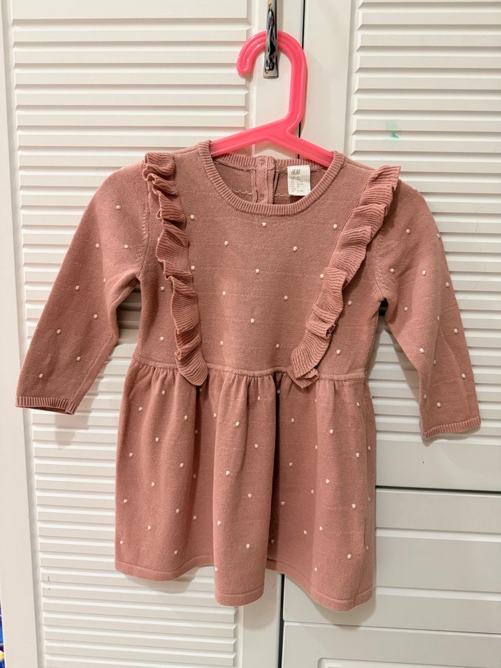 H&M Uzun Kollu Fırfırlı Pembe Kız Çocuk Elbise
