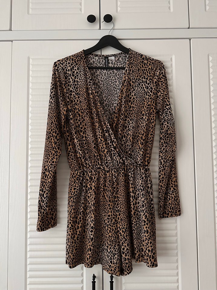 H&M Uzun Kollu Kahverengi Leopar Desenli Mini Tulum