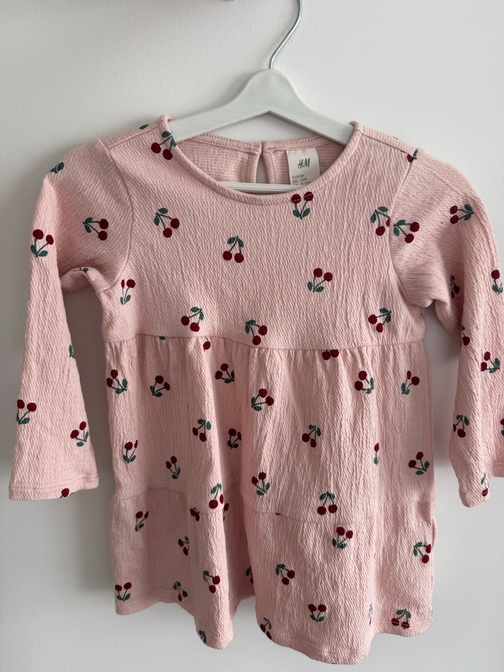 H&M Uzun Kollu Kiraz Desenli Kız Çocuk Elbise