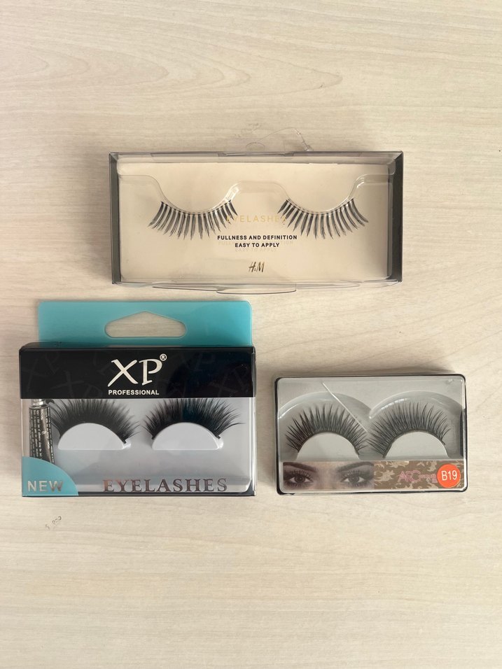 Hiç kullanılmadı, çeşitli markalara ait takma kirpikler. H&M’in modeli Mesmerise. Diğerleride görece yoğun kıllı kirpikler.