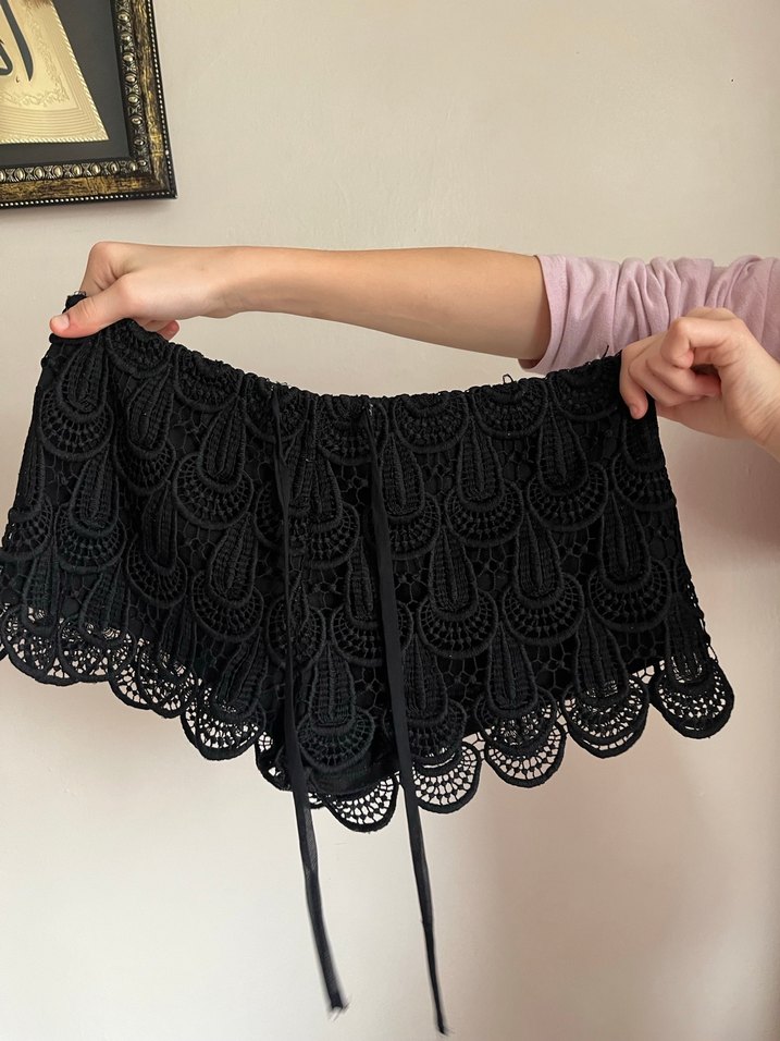 Marka: H&M Beden: XS (Extra Small) Romantik ve elegan bir dokunuş arayanlar için! Bu H&M XS beden dantel detaylı şort, gardırobunuza feminen ve sofistike bir hava katacak.Hiçbir defosu bulunmamakta