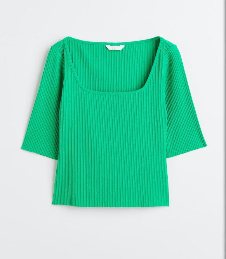 H&M Yeşil Kadın Triko Kısa Kollu top