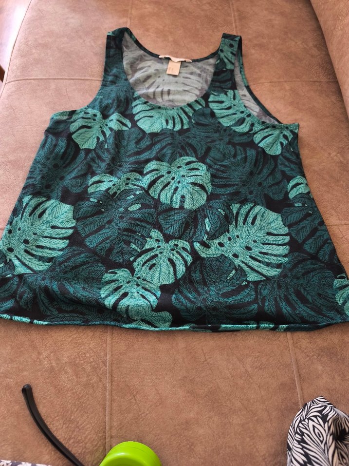 H.M Yeşil Yaprak Desenli Kolsuz buluz