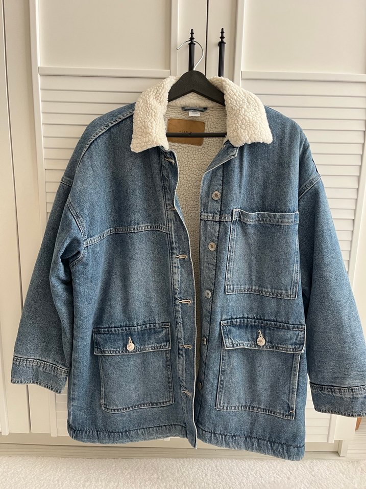 Düğmeli, uzun kollu ve yumuşak astarlı, notched lapel yakalı rahat kesim mavi denim kadın cekettir. Günlük sokak tarzı için uygundur.