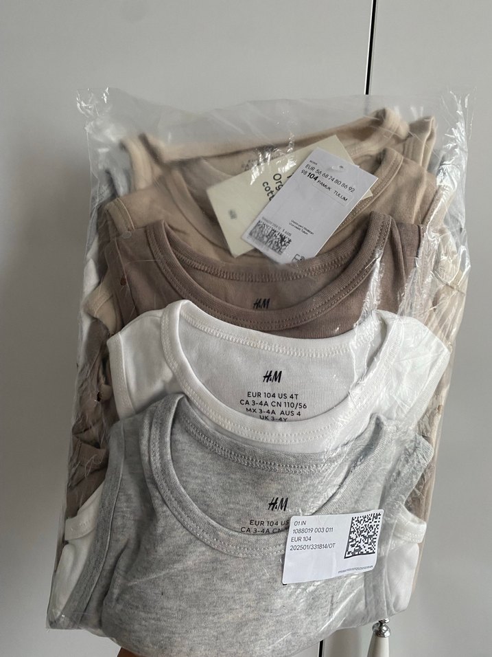 H&M markalı zıbın. bej, beyaz ve gri renklerde yumuşak kumaştan üretilmiştir. Rahat ve kullanışlıdır. Hala paketinde sıfır ürün 3-4 yaş