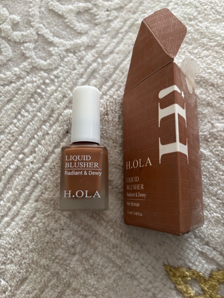 H.OLA sıvı allık, parlak bej tonunda, ışıltılı ve nemli bir görünüm sağlar. Ambalaj üzerinde ürün adı ve detayları yer alır. Kontür
