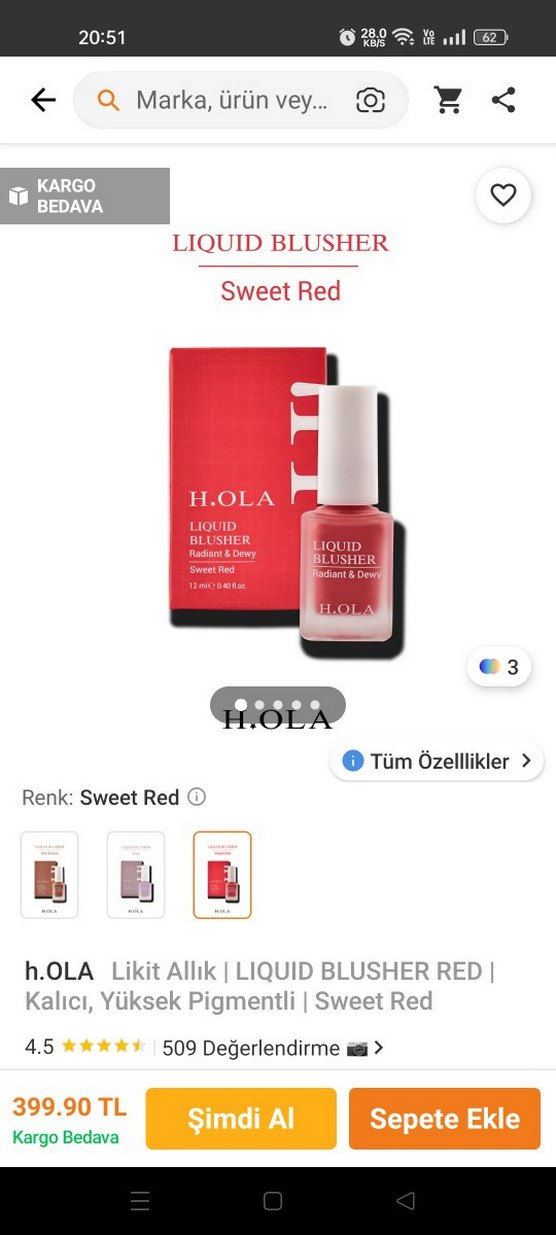 h.OLA Sweet Red Sıvı Allık