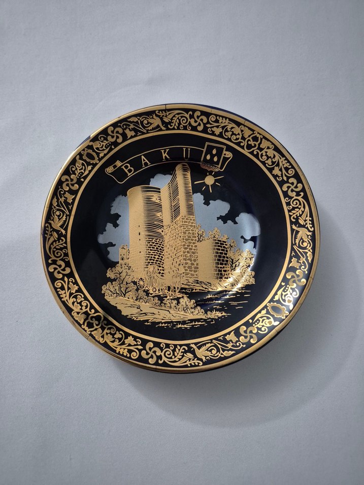 HAAS & CZJZEK ANTİKA PORSELEN TABAK 16 cm çapında Çek Cumhuriyeti'nin en köklü porselen markası Haas & Czjzek tarafından sınırlı sayıda üretilmiş, nadir bir koleksiyon parçasıdır. Bakü’nün tarihi simgesi Kız Kalesi temalı bu tabak, derin kobalt mavisi üzerine gerçek 24 ayar altın yaldız işlemelerle bezenmiştir.