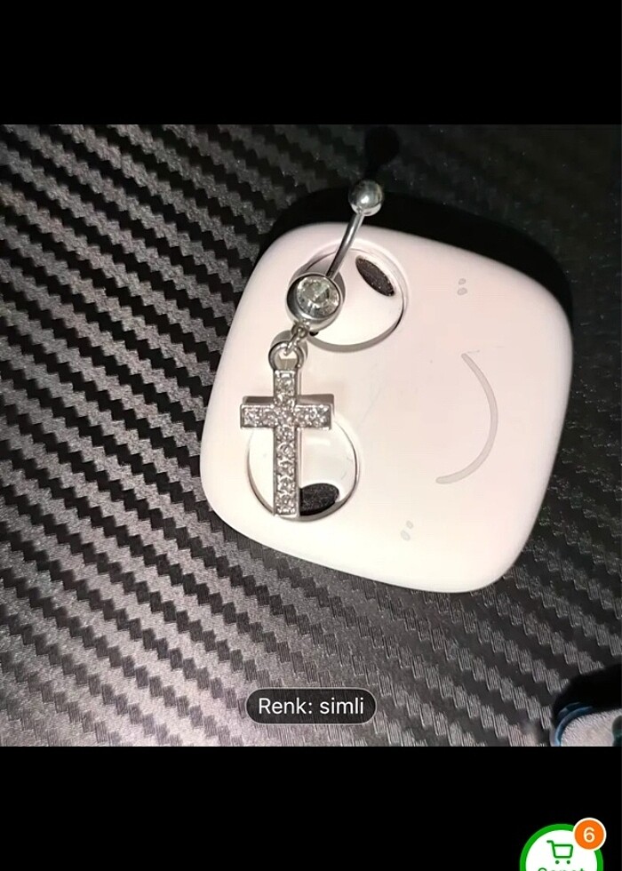 Çelik zirkon taşlı haç Çelik göbek piercing hiç kullanılmadı