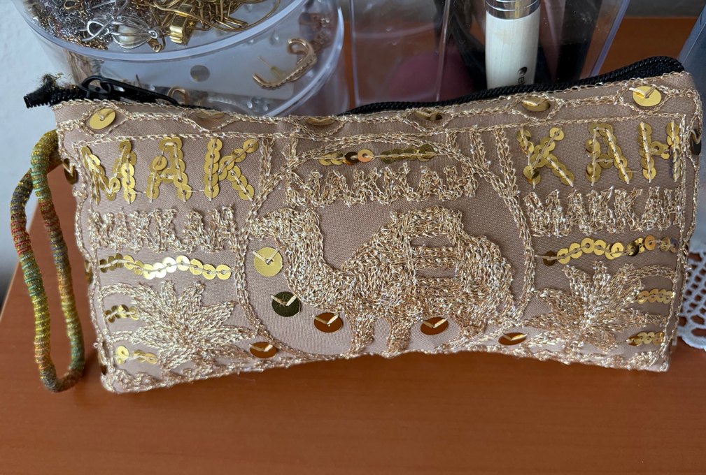 Sentetik kumaştan, parlak boncuk ve payet işlemeli deve motifi ile bej bohem tarzda kadın clutch çanta. Günlük kullanım için uygundur.