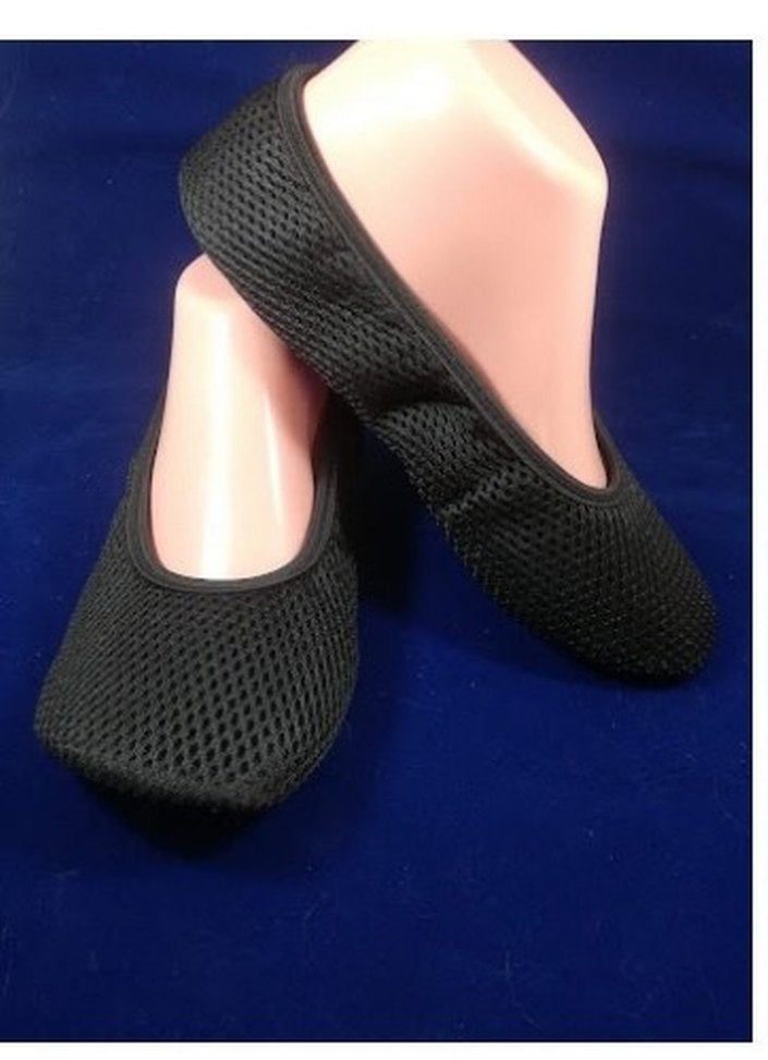 Esnek kenarlara sahip siyah babet ayakkabılar,