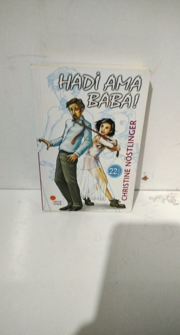 Christine Nöstlinger'in 'Hadi Ama Baba!' adlı çizgi romanı, bir adam ve genç bir kızın komik illüstrasyonunu içerir. Kız, adamın kravatını çekiyor.