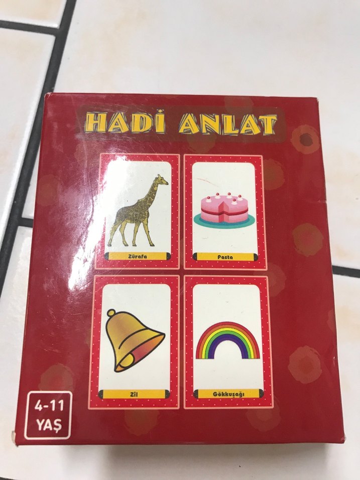 Hadi Anlat konseptli 55 kart var kum saati yoktur Kelime ve kavram öğrenmeye yardımcı olur .4/11 yaş yazmışlar kutuya ama 2/6 yaş için ideal yolculuklarda vakit geçirmek için ideal küçük bir kutu